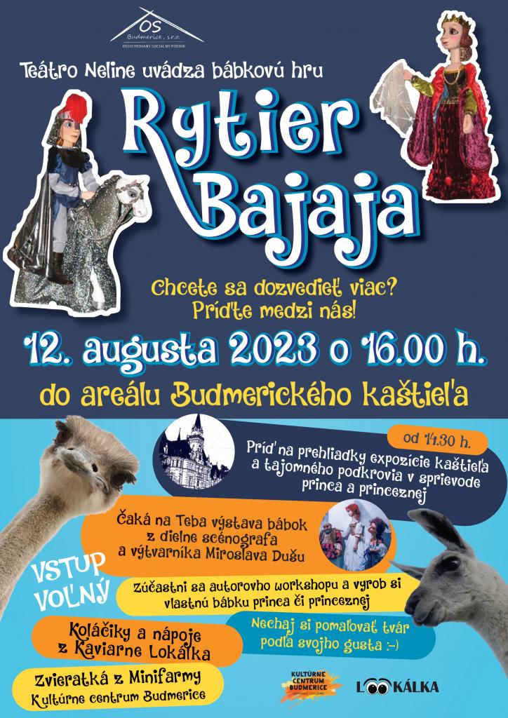 Obec Budmerice pozýva na divadelné predstavenie pre deti s názvom Rytier Bajaja, ktoré sa uskutoční 12.08.2023 o 16:00 hod. v Budmerickom kaštieli