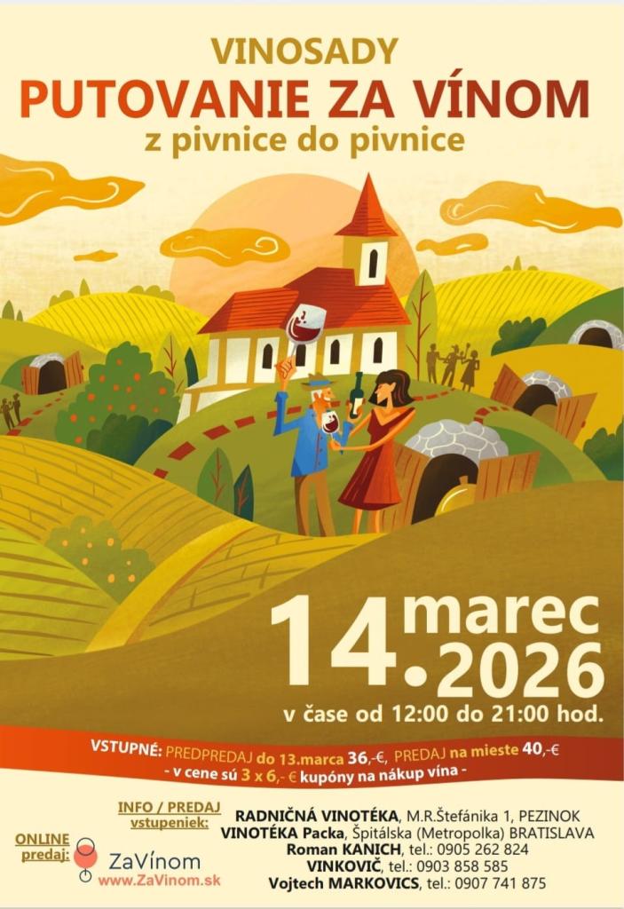 Vinári z obce Vinosady čoskoro otvoria svoje pivnice, aby milovníkom dobrého vína a regionálnych tradícií ponúkli to najlepšie zo svojej produkcie. Podujatie Putovanie za vínom z pivnice do pivnice sa bude konať 14. marca 2026.